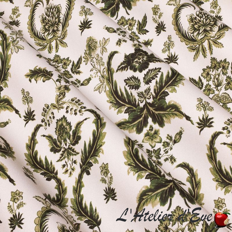 The ecru background is a fresh asset for this highly refined Madame Clélia cotton percale fabric, which meets the "Great Centuries" styles in red and green, symbolic of the gardens.