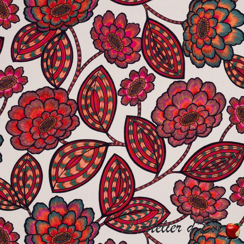 A floral pattern, flowers and leaves, majestic wow!!! in bright colors and trendy for this cotton canvas for armchairs, curtains, cushions, headboard...
