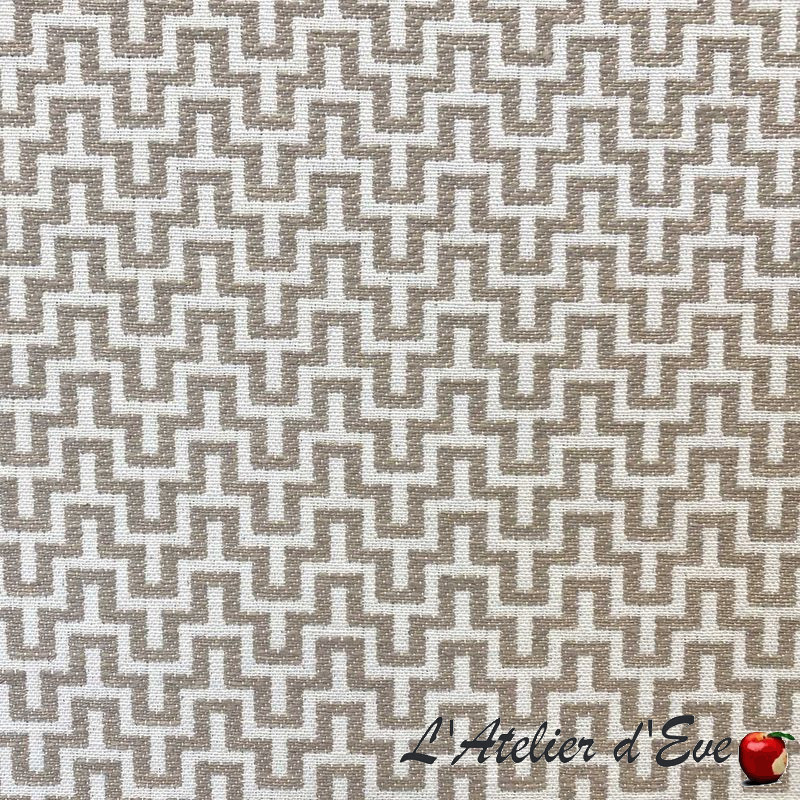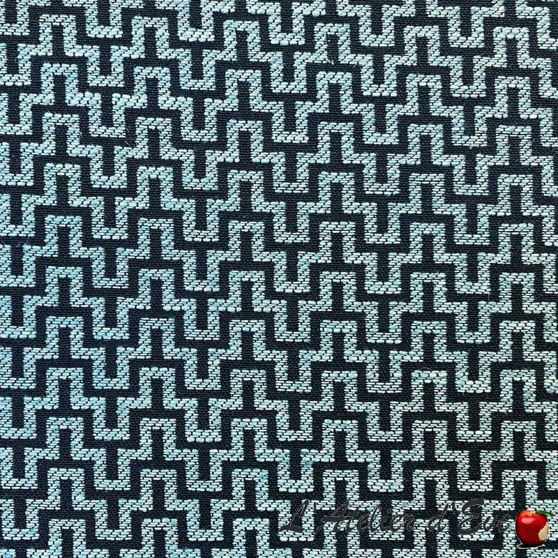 Referring to the 1001 ornaments of the Alhambra, the Andalusia collection mixes Arabic influences with more Iberian orientations. A graphic game of jacquard composed of curved lines and arabesques colored in two colors on a white or black basis.