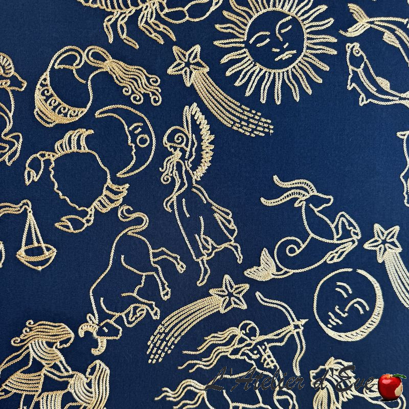 It is with great refinement that the embroidered Astral fabric presents you with astral themes on a satin cotton background with superbembroiderygolden. A pure marvel!