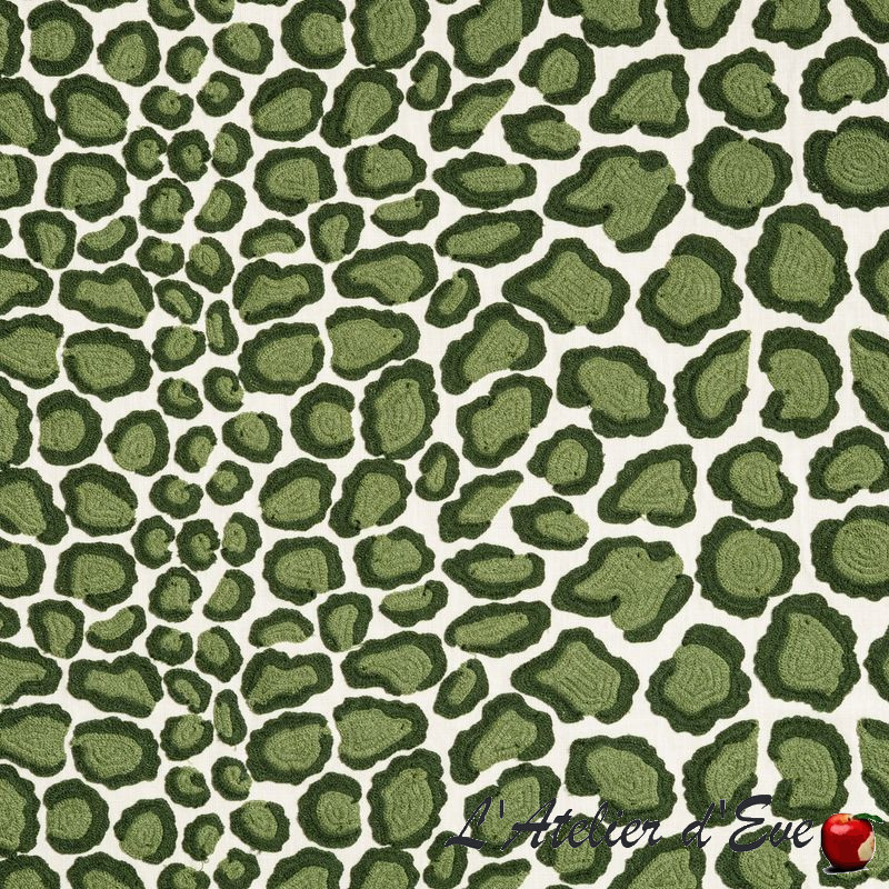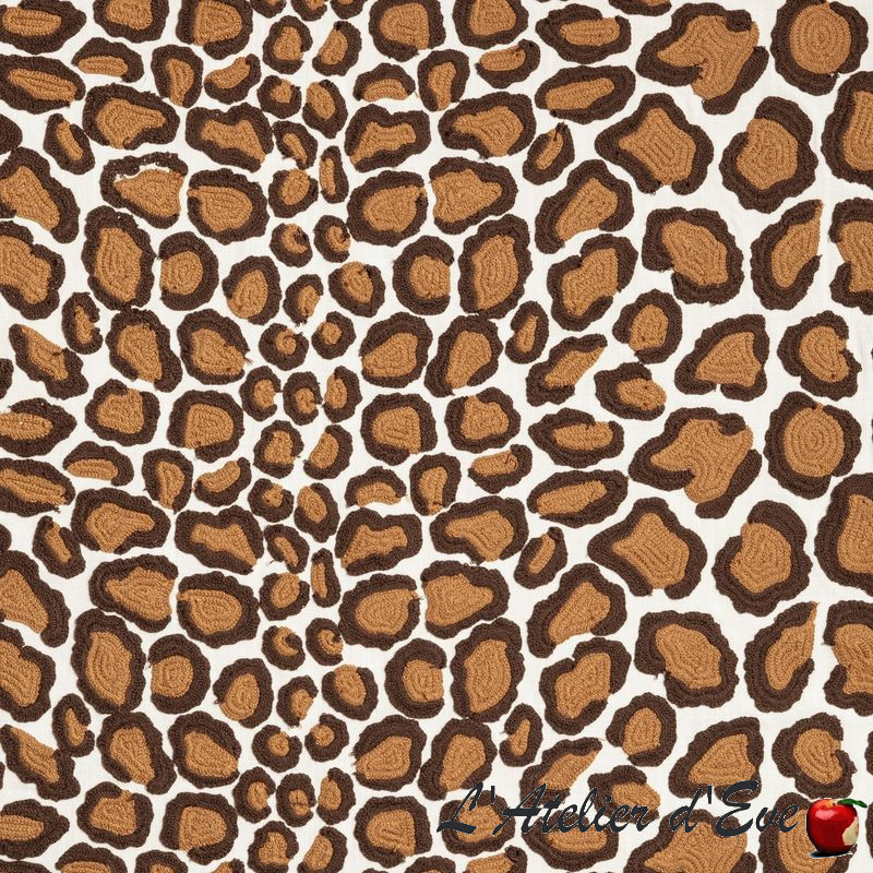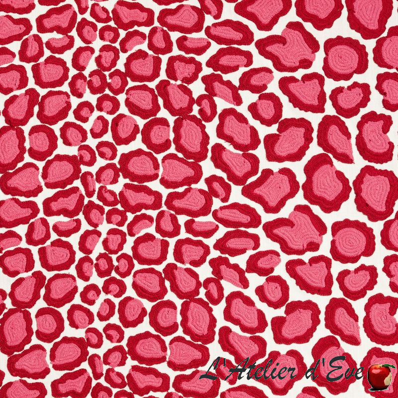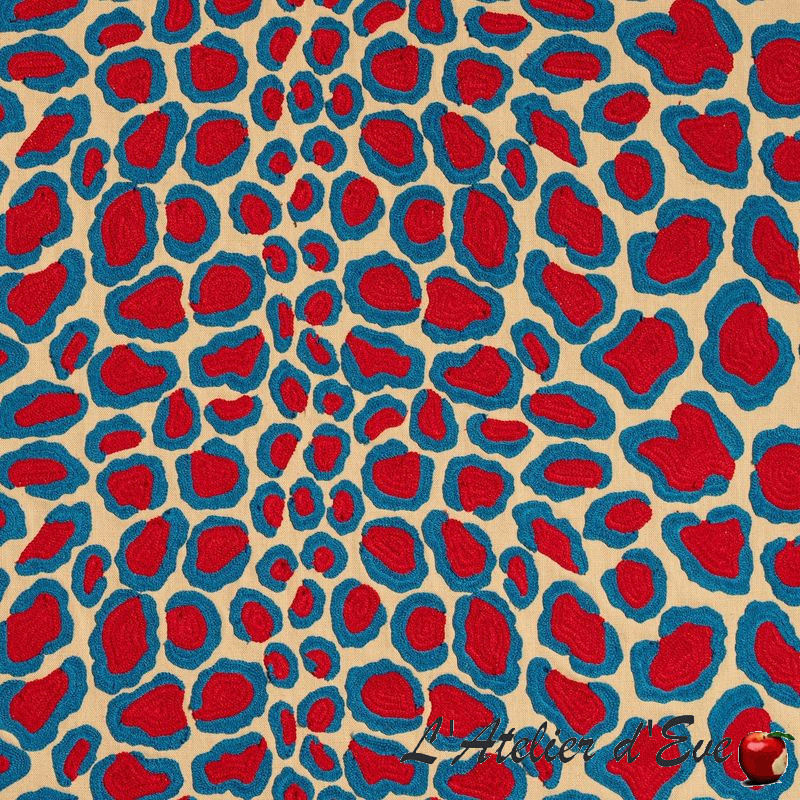 Traditional animal skins rebel and take on a cheeky appearance: witness this embroidered fabric with dazzling accents, which dares all chromatic fantasies. There are bold hues such as guava pink and fuchsia, matcha and olive green, butter yellow and pineapple, until a surprising blue and red mixture called "peacock" – a nod to an extravagant peacock. Only the brown version moderates this explosion of colours a little. Called Coup de griffe, this fabric is embroidered with viscose yarns on a cotton/linen base, straight out of the imagination of Pierre Sauvage, at the head of Casa Lopez.