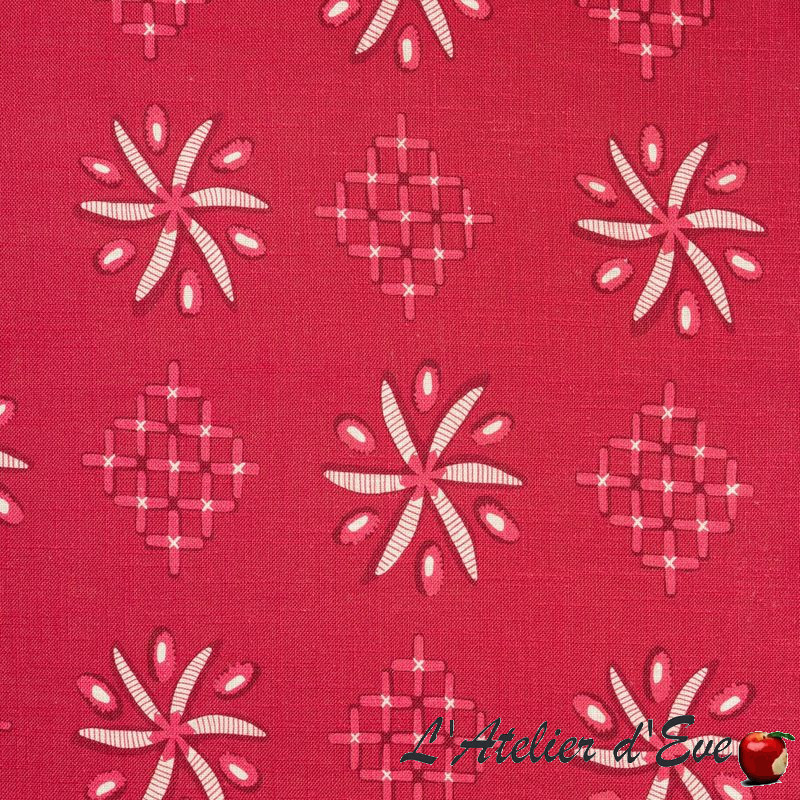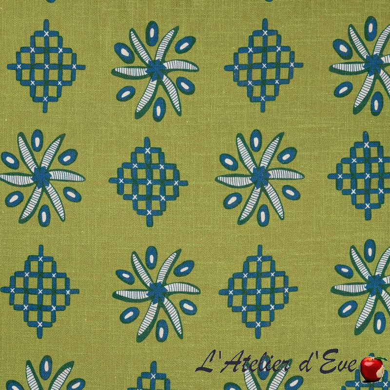 and extremely vibrant tones. For its new collection of fabrics, Cas Lopez transposes emblematic textiles from the countries of Eastern Europe, in a Norman garden. This crossover of influences gives rise to fabrics with extremely vibrant patterns and tones.