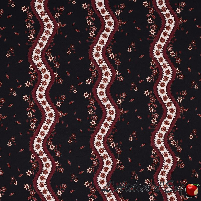 In the print on Swirls furniture percale, we find the stylistic markers of the designer Cordélia de Castellane: romanticism, French tradition, small garden flowers arranged in a historical textile composition. This raspberry colourway features a garnet tone, revealed by the contrast of a white in the undulating line as well as a black background.