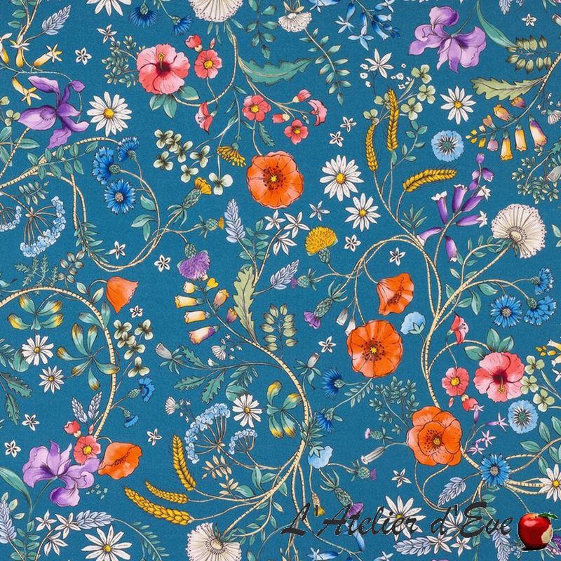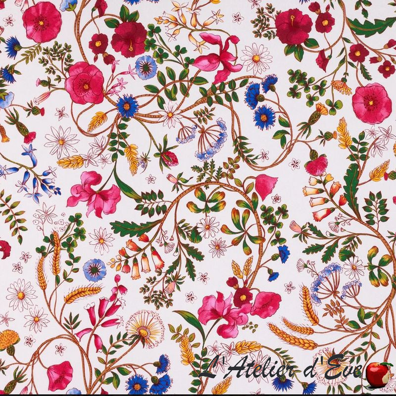 A refined fabric for this Jardin des Secrets model featuring a flowerbed of field flowers in flamboyant colours on a contrasting background, in perfect harmony.