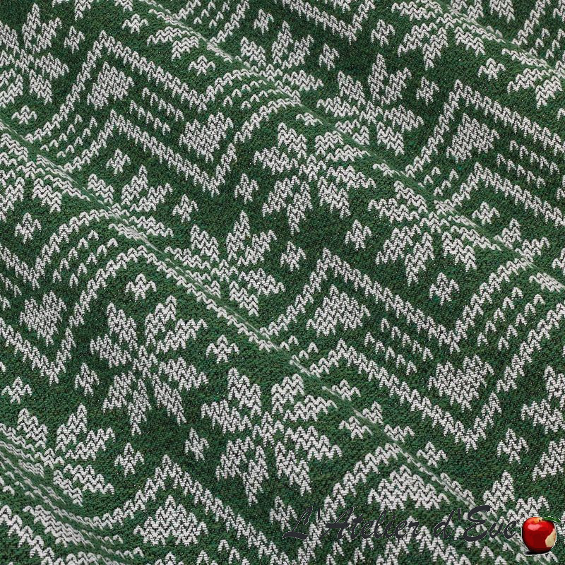 Des flocons comme s'il en pleuvait mais sur un beau tissu jacquard de laine et alpaga, motif montagne pour amener encore plus de chaleur dans votre maison de campagne, votre chalet ou un coin repos dans votre maison