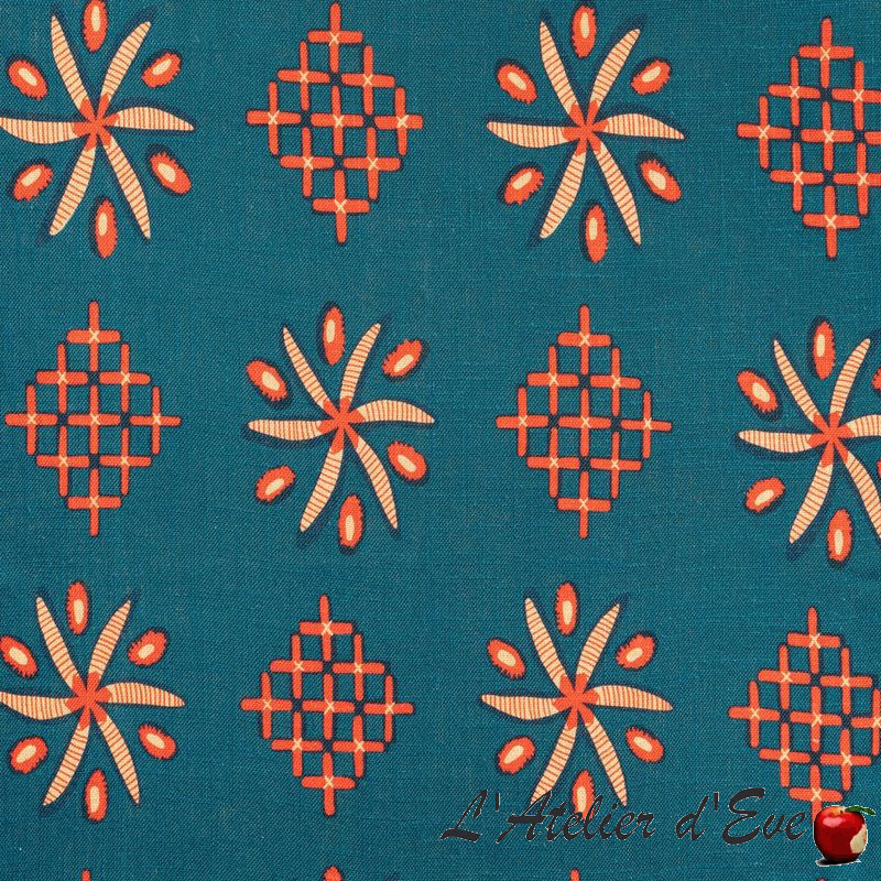 et tonalités extrêmement vibrantes. Pour sa nouvelle collection de tissus, Cas Lopez transpose des textiles emblématiques des pays de l'est de l'Europe, dans un jardin normand. Ce croisement d'influences donne naissance à des étoffes aux motifs et tonalités extrêmement vibrantes.