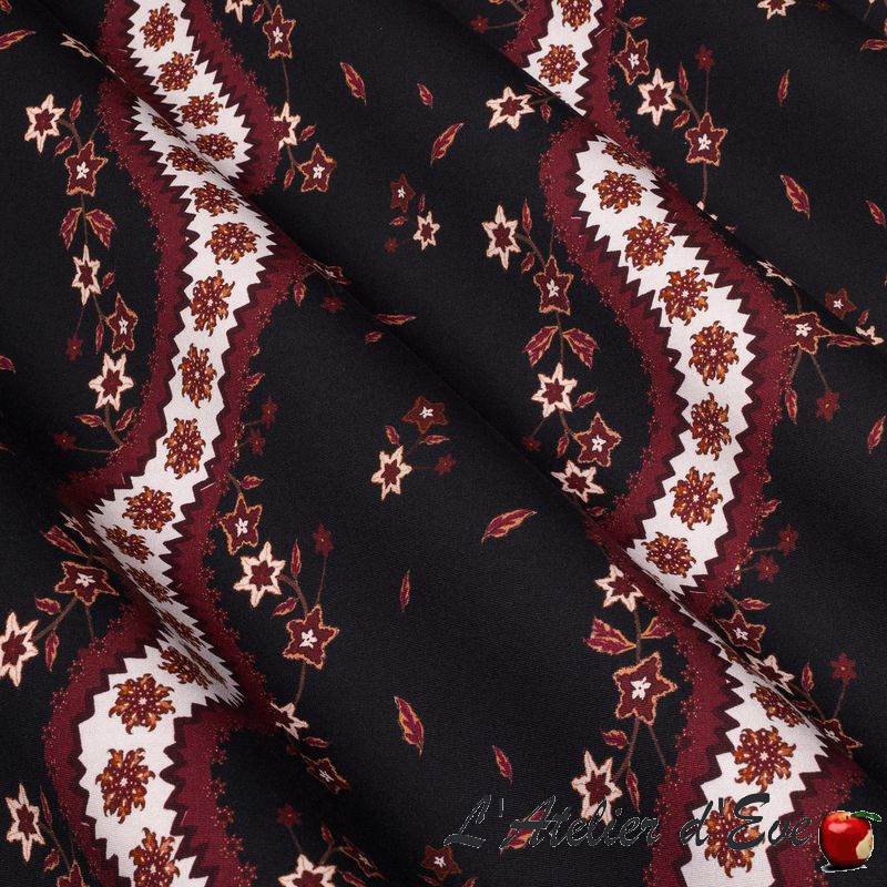 On retrouve dans l’imprimé sur percale d’ameublement Swirls les marqueurs stylistiques de la créatrice Cordélia de Castellane : le romantisme, la tradition française, les petites fleurs des jardins agencées dans une composition textile historique. Ce coloris framboise met en scène un ton grenat, révélé par le contraste d’un blanc dans la ligne ondulante ainsi que d’un fond noir.
