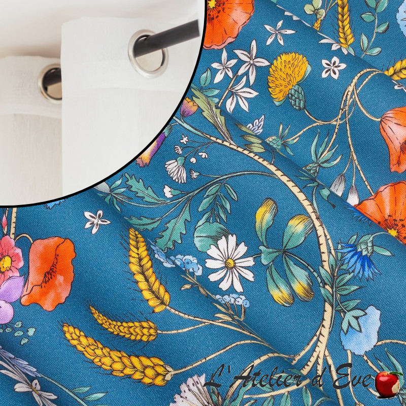 Un tissu raffiné pour ce modèle Jardin des Secrets où s'exposent un parterre de fleurs des champs aux couleurs flamboyantes sur un fond contrasté, en parfaite harmonie.