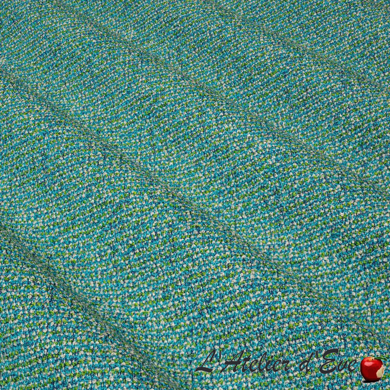 Tweedé, tonique et ludique, le tissu outdoor Mediterrannée possède la fibre pointilliste et mixe quatre nuances dans ses reliefs tire-bouchonnés. Un léger effet de rayures horizontales se devine et se faufile, brouillé pour plus de discrétion, en dépit des couleurs franches. Vive les tissus techniques créatifs !