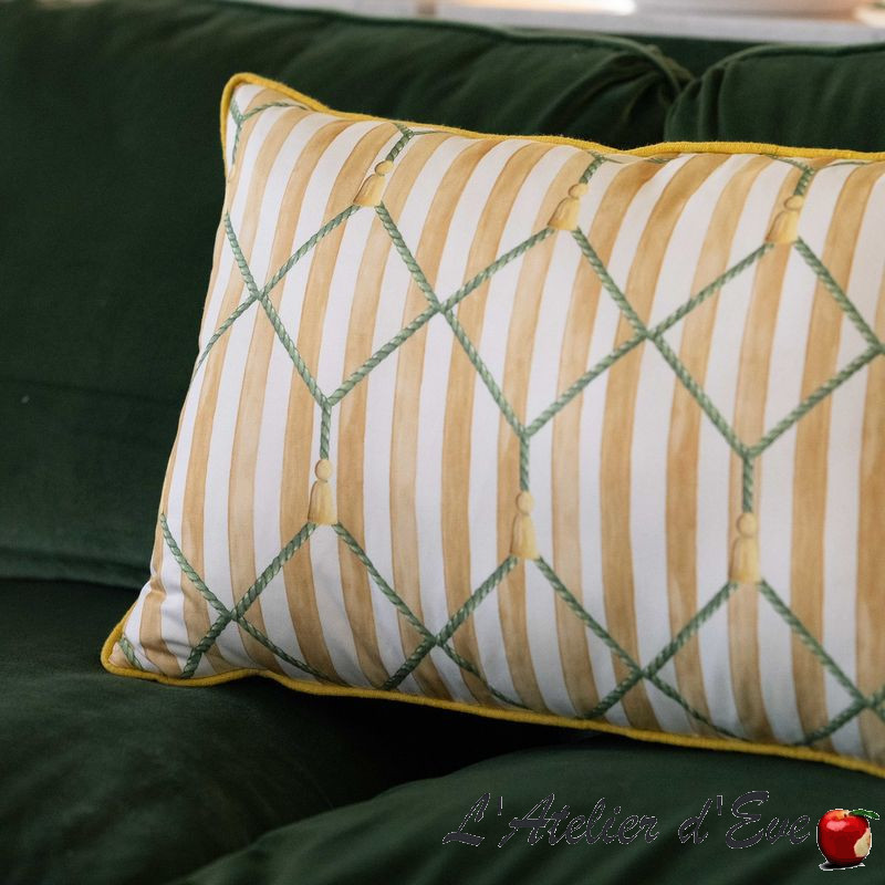 Une treille originale, riche, raffinée avec cette collection en percale de coton satinée, où des jolis petits pompons trônent avec élégance sur un motif rayure aux couleurs fraîches et harmonieuses.