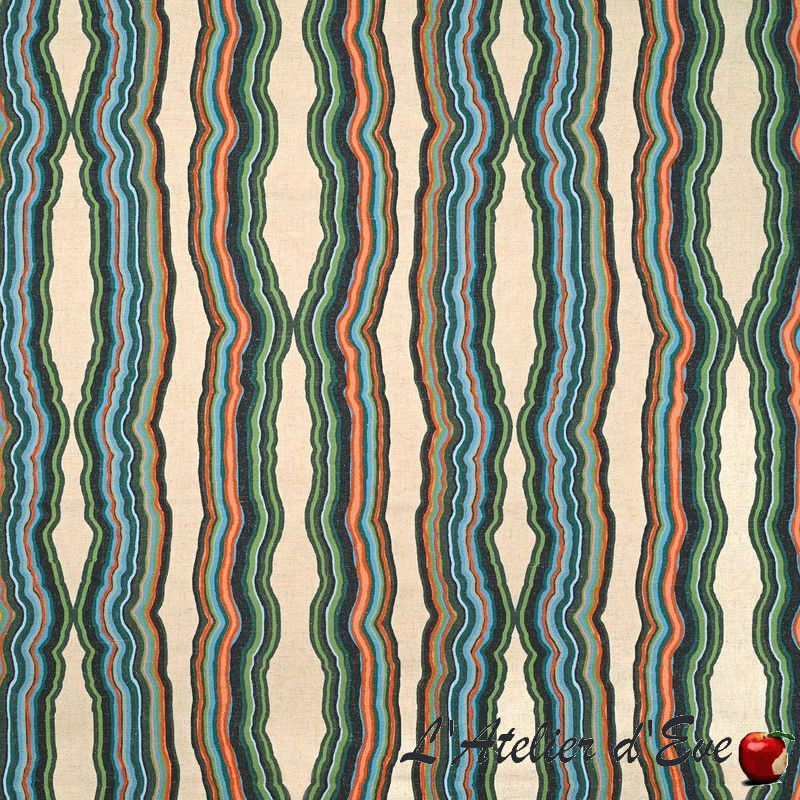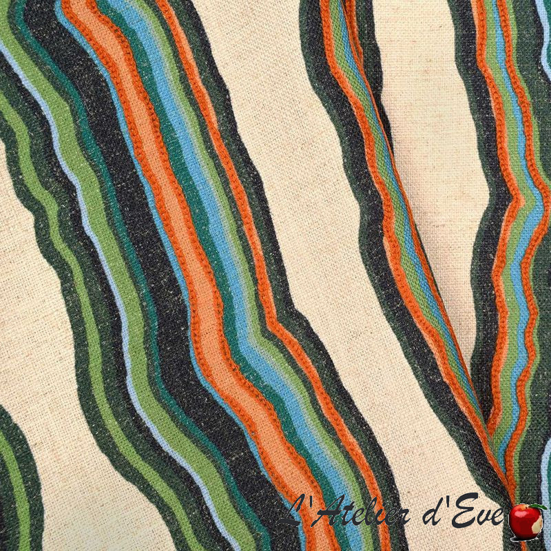 Une déferlante de couleurs en vagues multicolores pour ce tissu Cuzco avec le grand raffinement d'une broderie en points de chainette pour marquer le mouvement et créer du relief. Superbe!