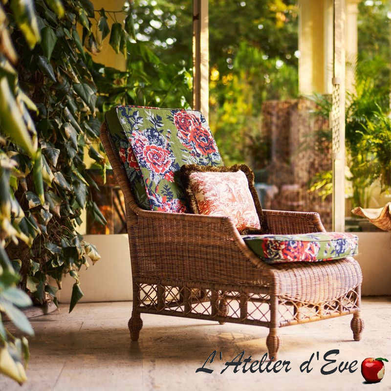 Le tissu ÉGLANTINE s’inspire d’une archive issue du fonds Quenin, dans l’esprit d’une indienne. Redessinée tout en préservant le charme artisanal de l’impression manuelle d’origine et ses subtiles irrégularités de trait, cette création est tissée et imprimée en France sur une toile 100 % coton.