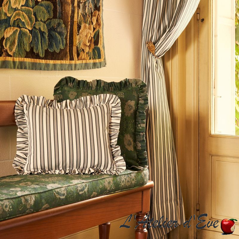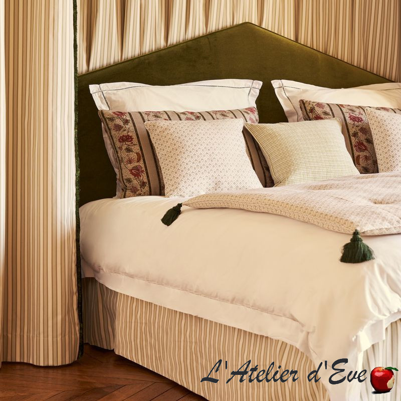 Inspirée de l’élégance intemporelle des tissus d’ameublement de la fin du XIXᵉ, cette rayure évoque le charme des maisons balnéaires, tout en restant moderne. Sa texture mate, naturelle met en valeur la pureté du coton, matière noble, authentique, à la fois souple et résistante.