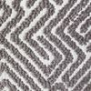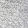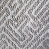 Un motif bicolore sans fin tel un labyrinthe, où des fils de laine mélangés sont rebrodés en bouclette pour lui donner un relief comme des petits massifs mais avec une grande élégance.