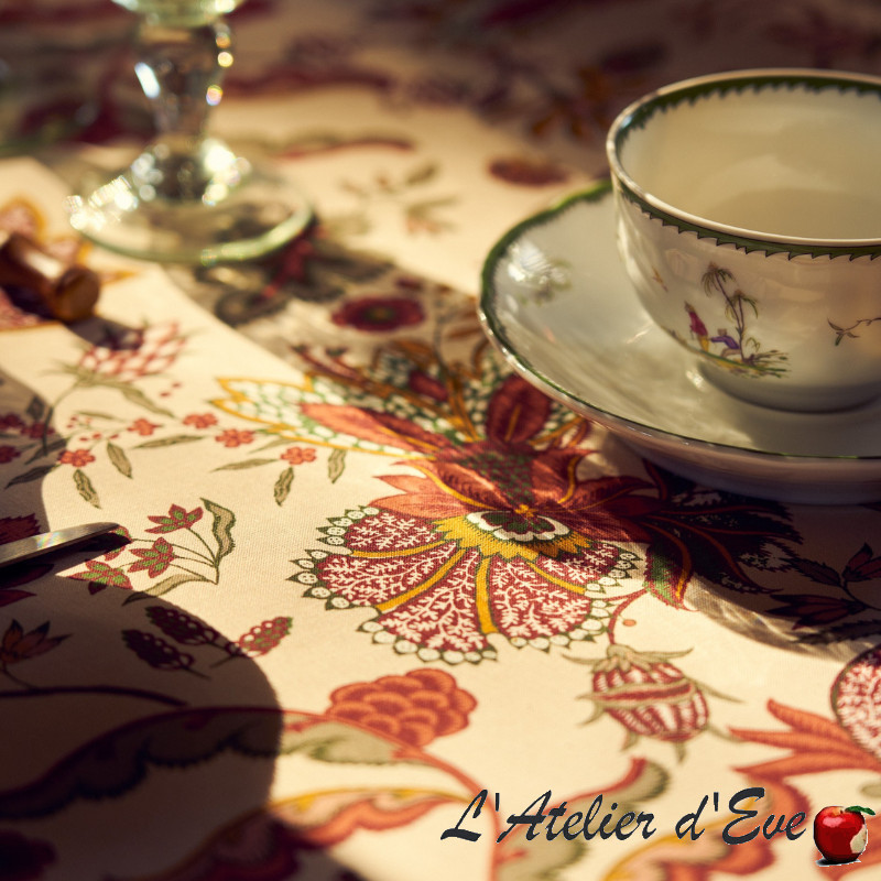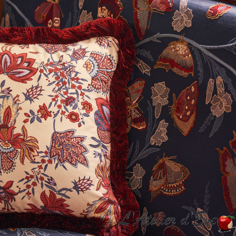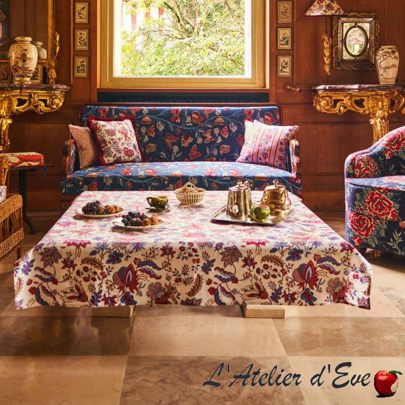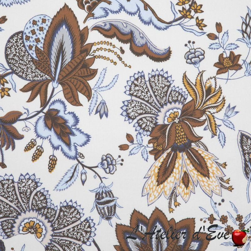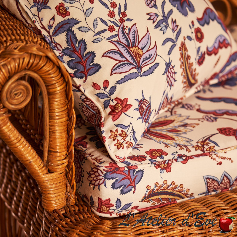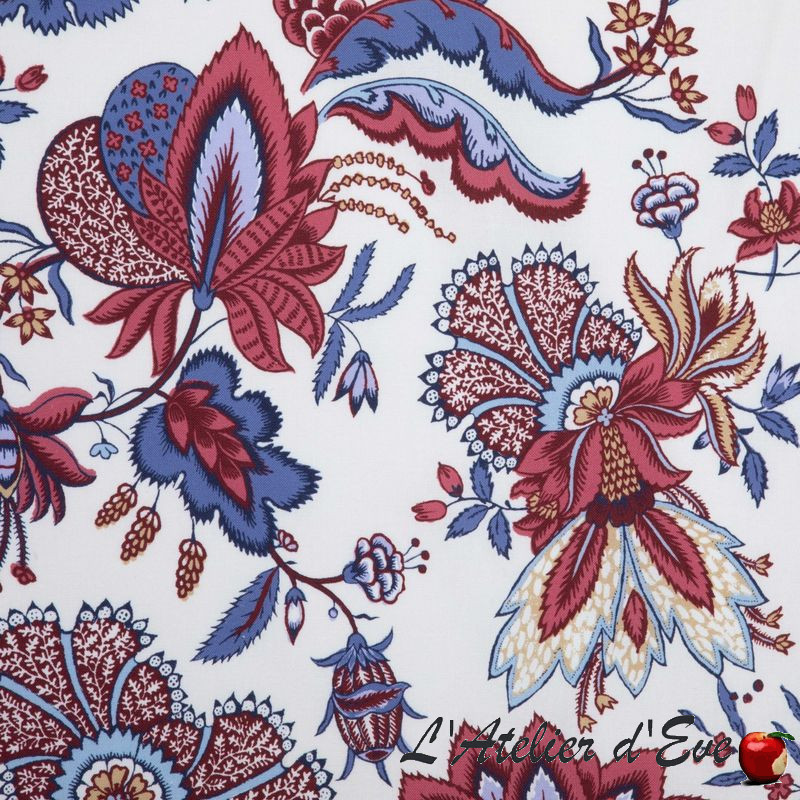 Le tissu imprimé fleuri ÉGLANTINE est inspiré de l'esprit d'une indienne. Cette indienne est tissée et imprimée en France sur une toile en 100% coton pour rideaux, sièges, tentures, accessoires décoration.
